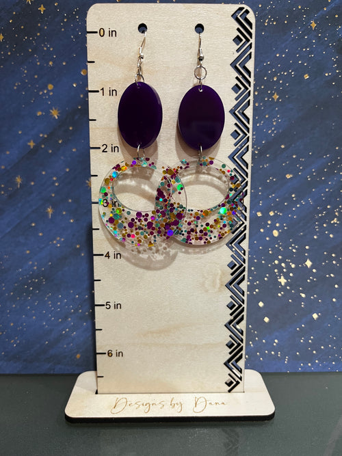 60's inspired purple and confetti earrings